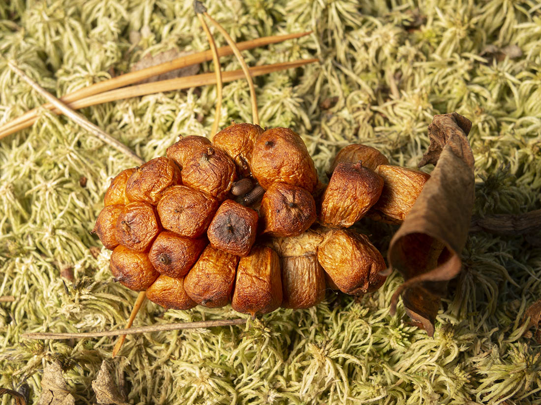 Плод, очищенный от внешней оболочки. Подмосковье, окр. Переделкино, болото. 06.09.2018.