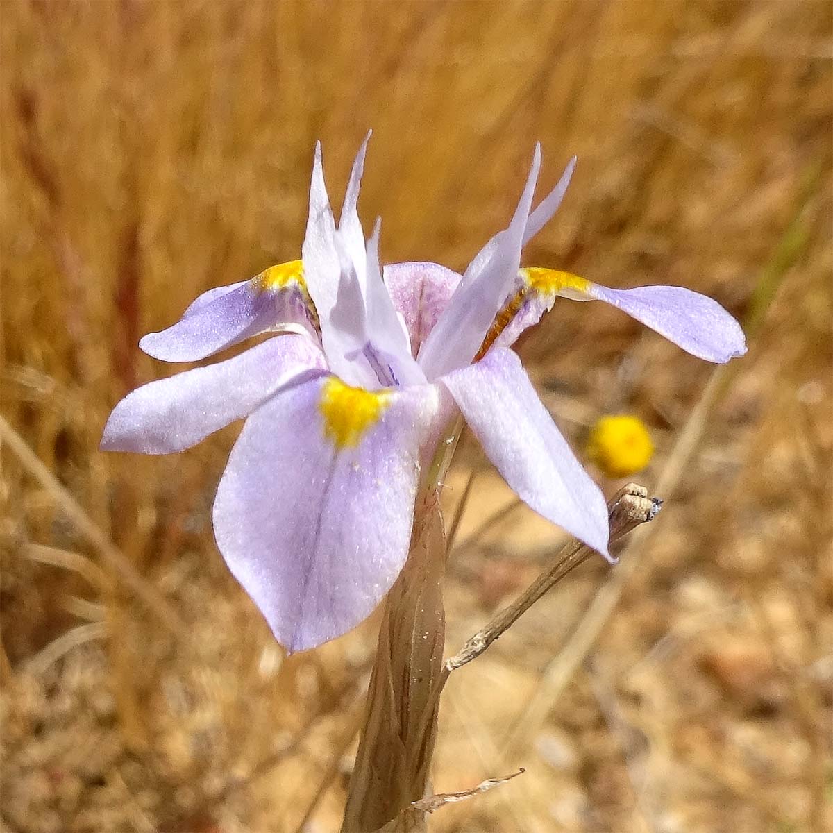 Цветущее растение среди сухой травы. ЮАР, провинция Западный Кейп, частный природный резерват Klein Cederberg. 15.10.2018.
