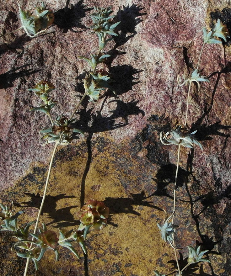Плодоносящие растения, стелющиеся вдоль склона сопки. Казахстан, Карагандинская обл., Актогайский р-н, юго-восточнее пос. Моинты, юго-западный склон сопки с глыбово-щебнистой осыпью. 24.09.2018.