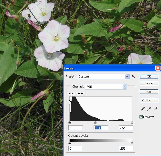 Более простой вариант - откорректировать показатель "гамма" с использованием инструмента "Уровни" ("Levels") - в данном случае я перетащил средний ползунок влево: