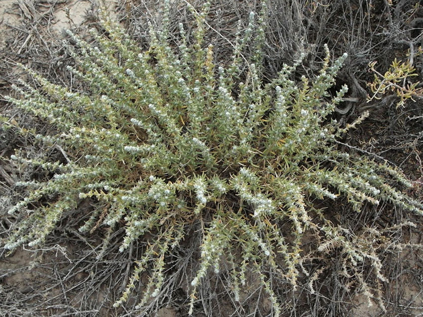 | Александр Павленко | Это скорее всего Salsola, типа arbuscula- arbusculiformis. У кустарниковых ( кустарничковых) солянок часто наблюдаются в узлах отрастаний листьев клубочки перепутанных длинных белых волосков. На этом растении, они вероятно слишком сильно развиты. Если это не галлы... |