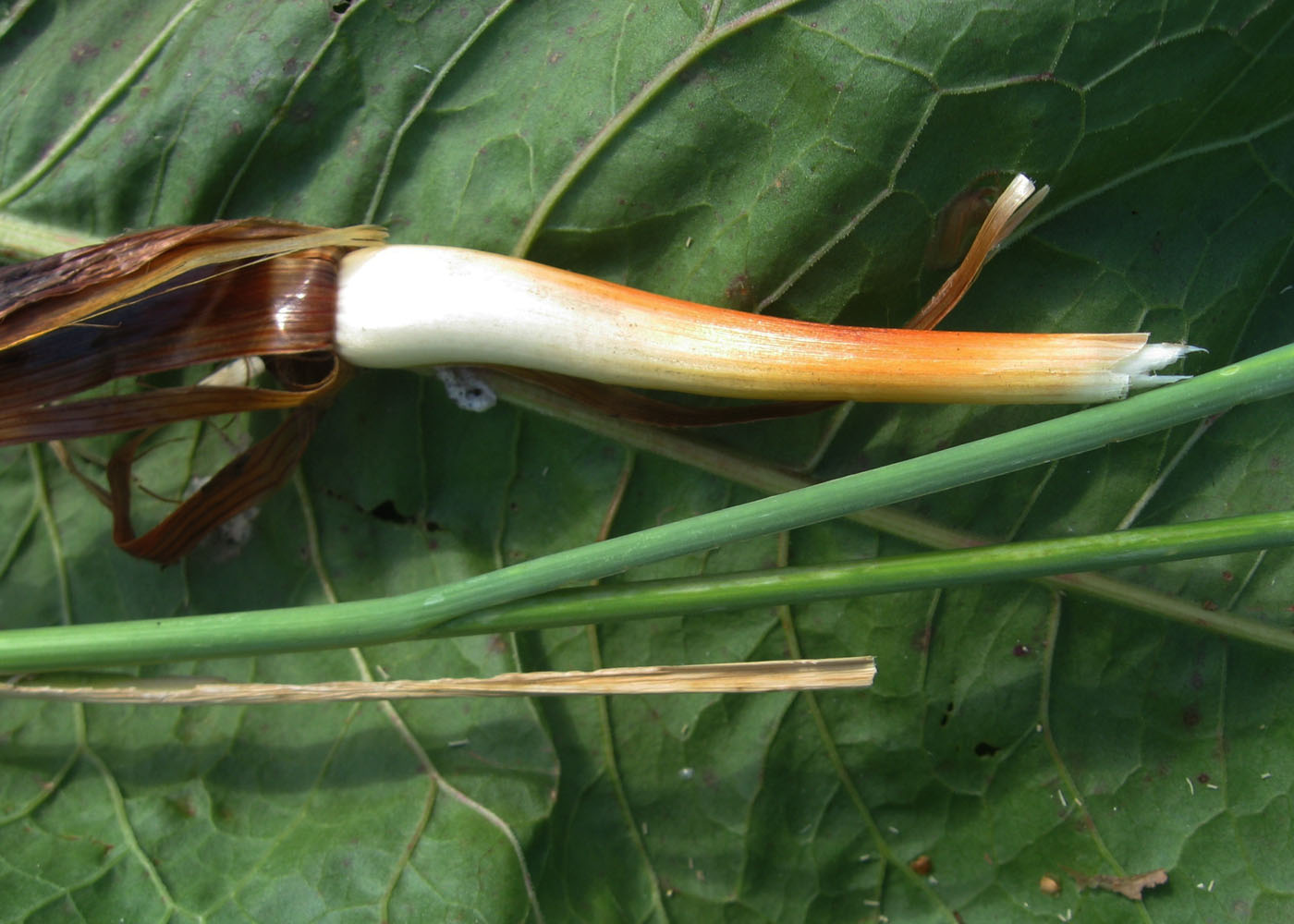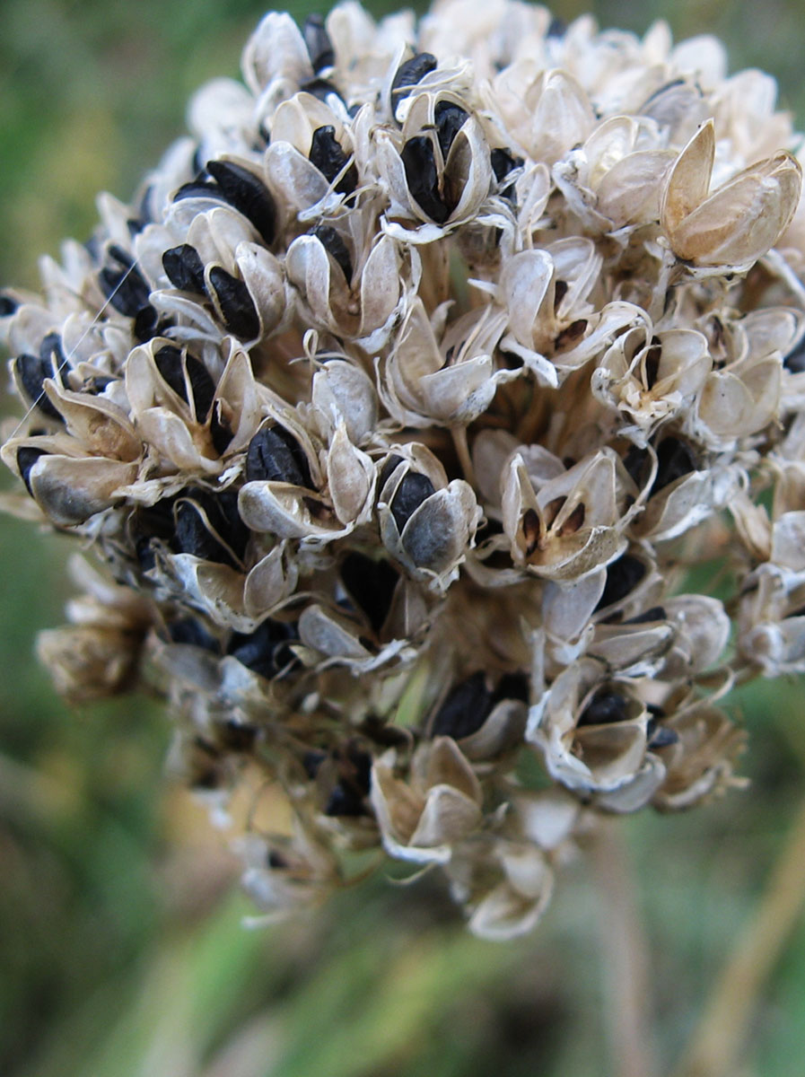Луковицы цилиндрические во влажном снимающмся чехле (2 фото). Семена крупные в шаровидных соцветиях (фото).