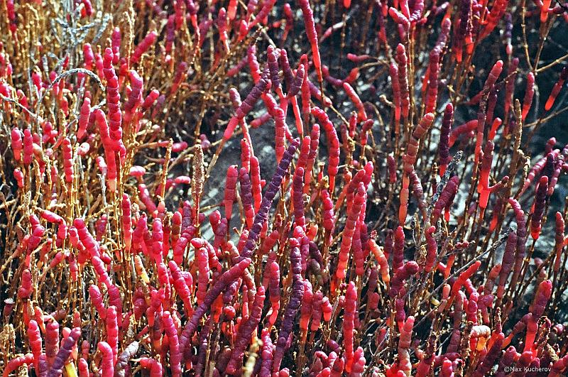 Группа растений в конце вегетации. Волгоградская обл., окр. оз. Эльтон, балка Биологическая. Сентябрь 1997 г.