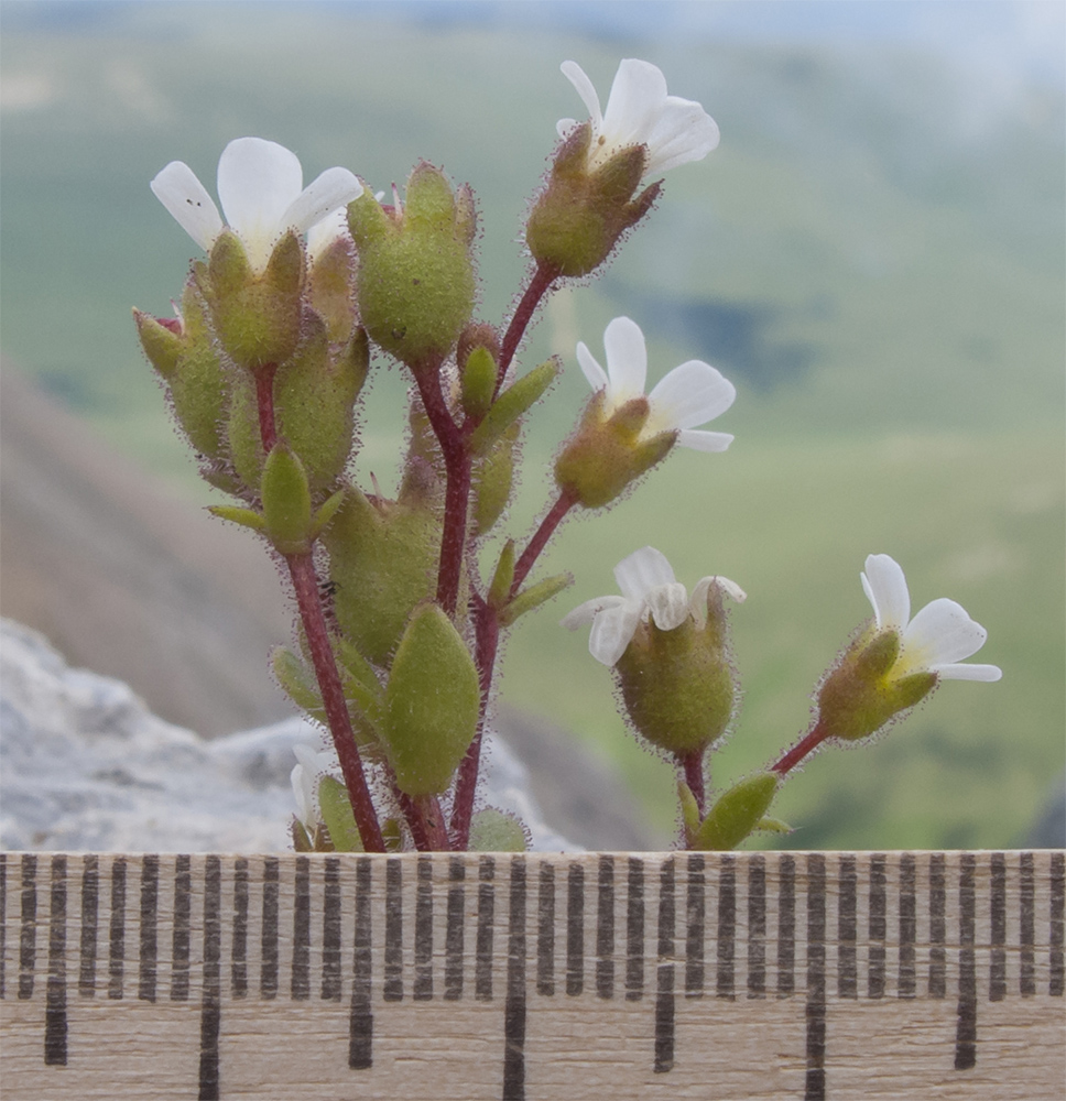 Верхушка цветущего растения. Адыгея, Кавказский биосферный заповедник, гора Оштен, ≈ 2800 м н.у.м., альпийская пустошь, в расщелине скалы. 18.07.2015.