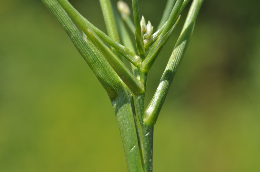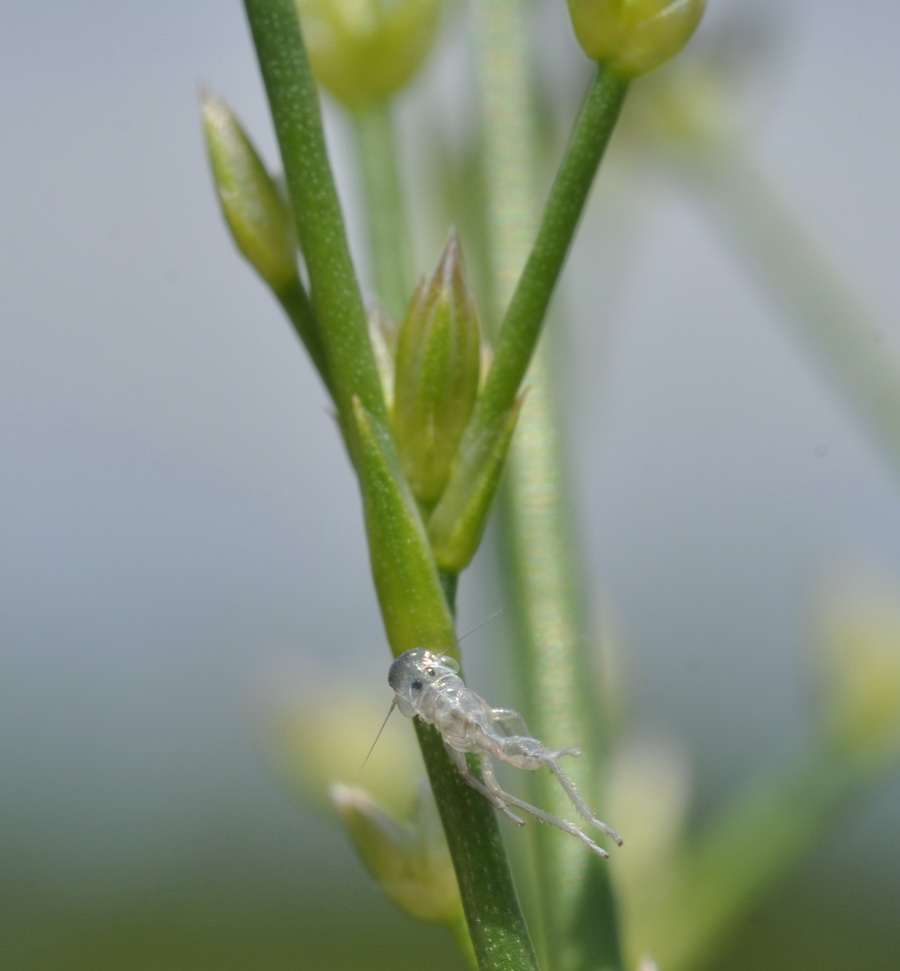 Часть распускающегося соцветия с экзувием цикадки. Приморский край, Шкотовский р-н, окр. с. Новонежино, сырой разнотравный луг. 30.07.2019.