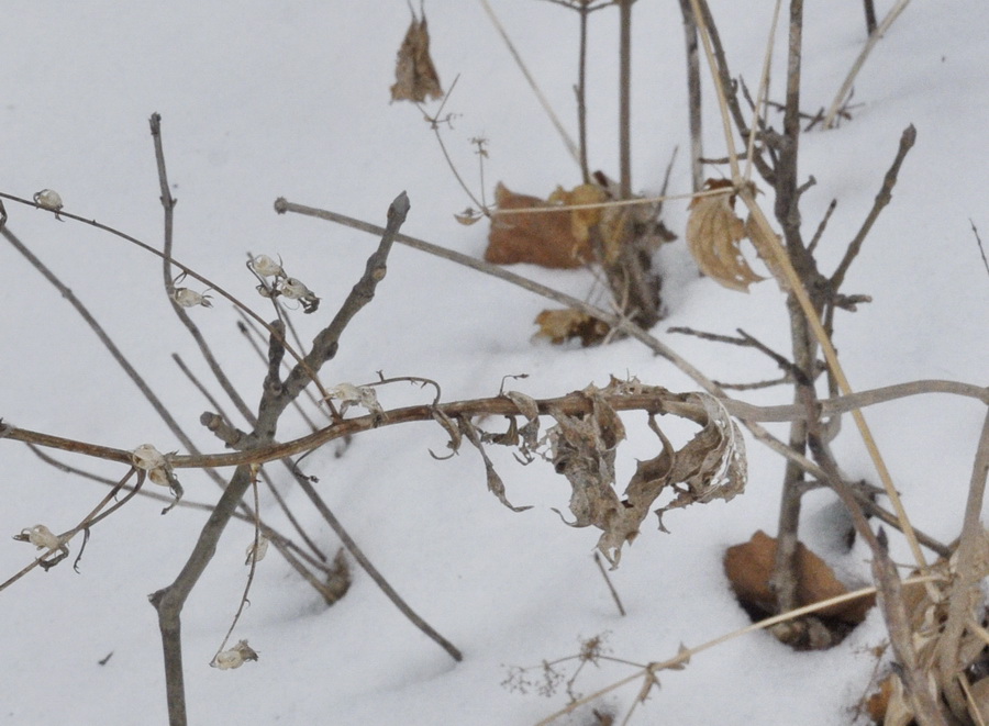 Часть сухого соплодия. Приморский край, Шкотовский р-н, пос. Подъяпольск, поляна на поросшем кустарником и переходящим в овраг склоне. 15.12.2019.