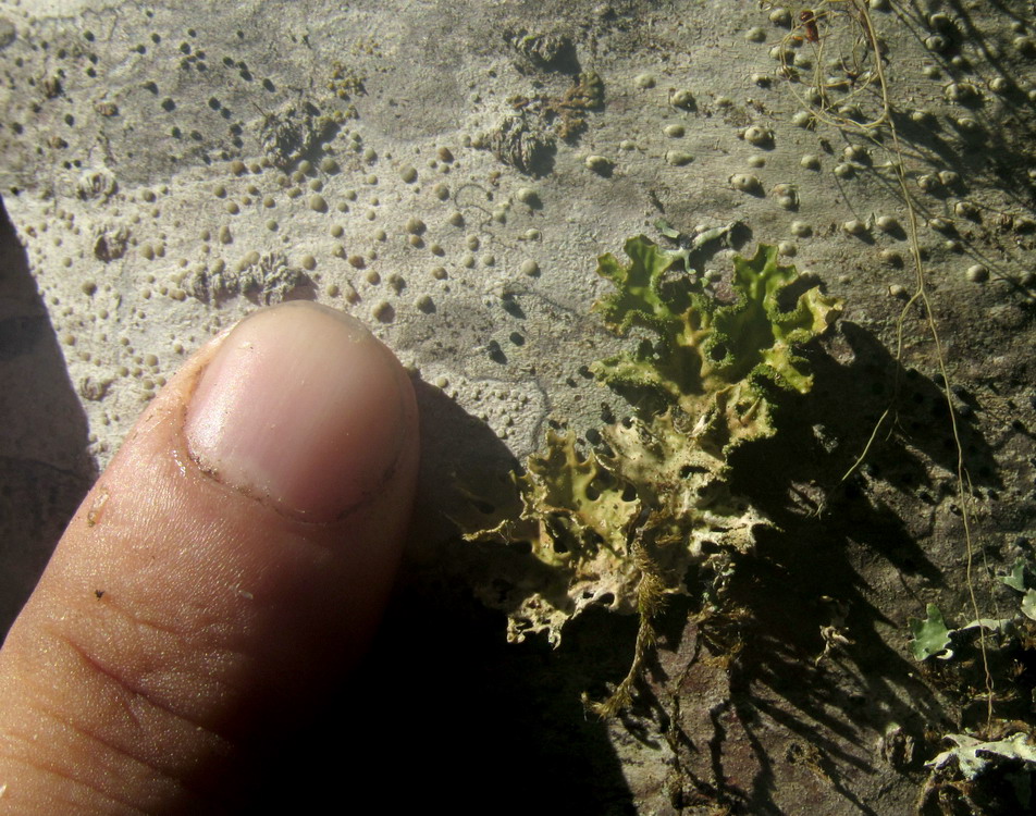 Зрелое слоевище с соралями на стволе пихты. Красноярский край, Курагинский р-н, долина р. р. Базыбай близ устья, черневая тайга. 03.08.2019.