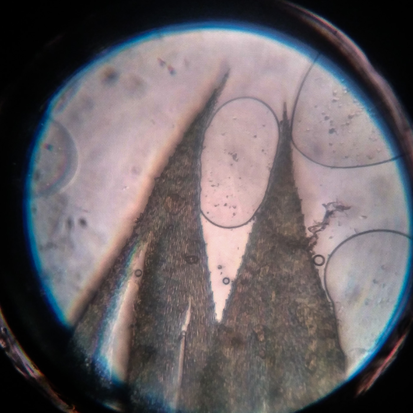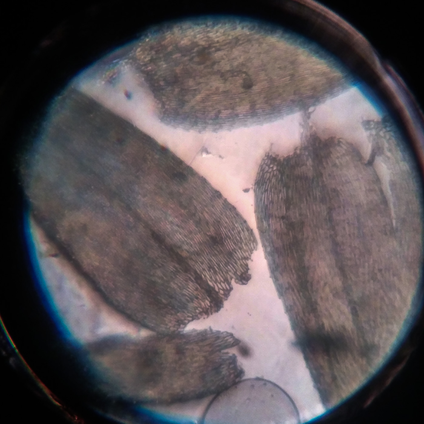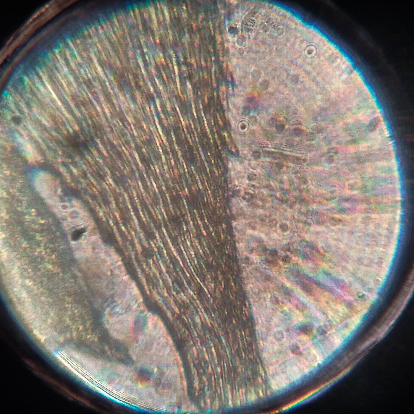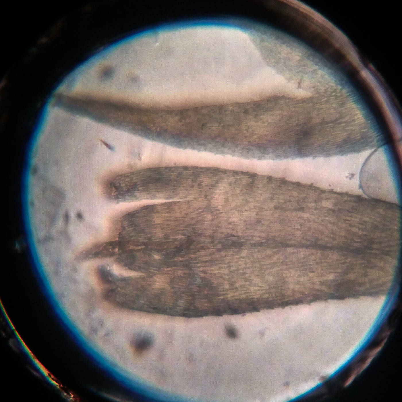 Верхушки веточек (в центре верхушка симподиального побега — тоньше остальных). Свердловская обл., окр. г. Заречный, ур. Черемшанское болото, в логу с ручьём, на гниющей древесине. 27.09.2019.