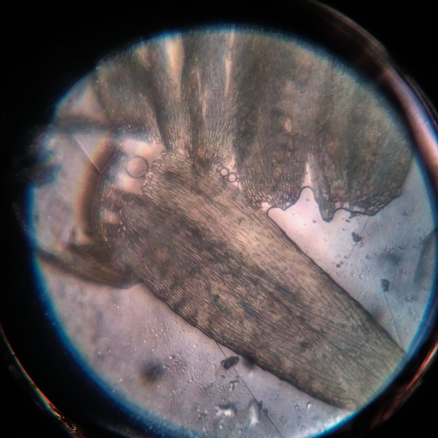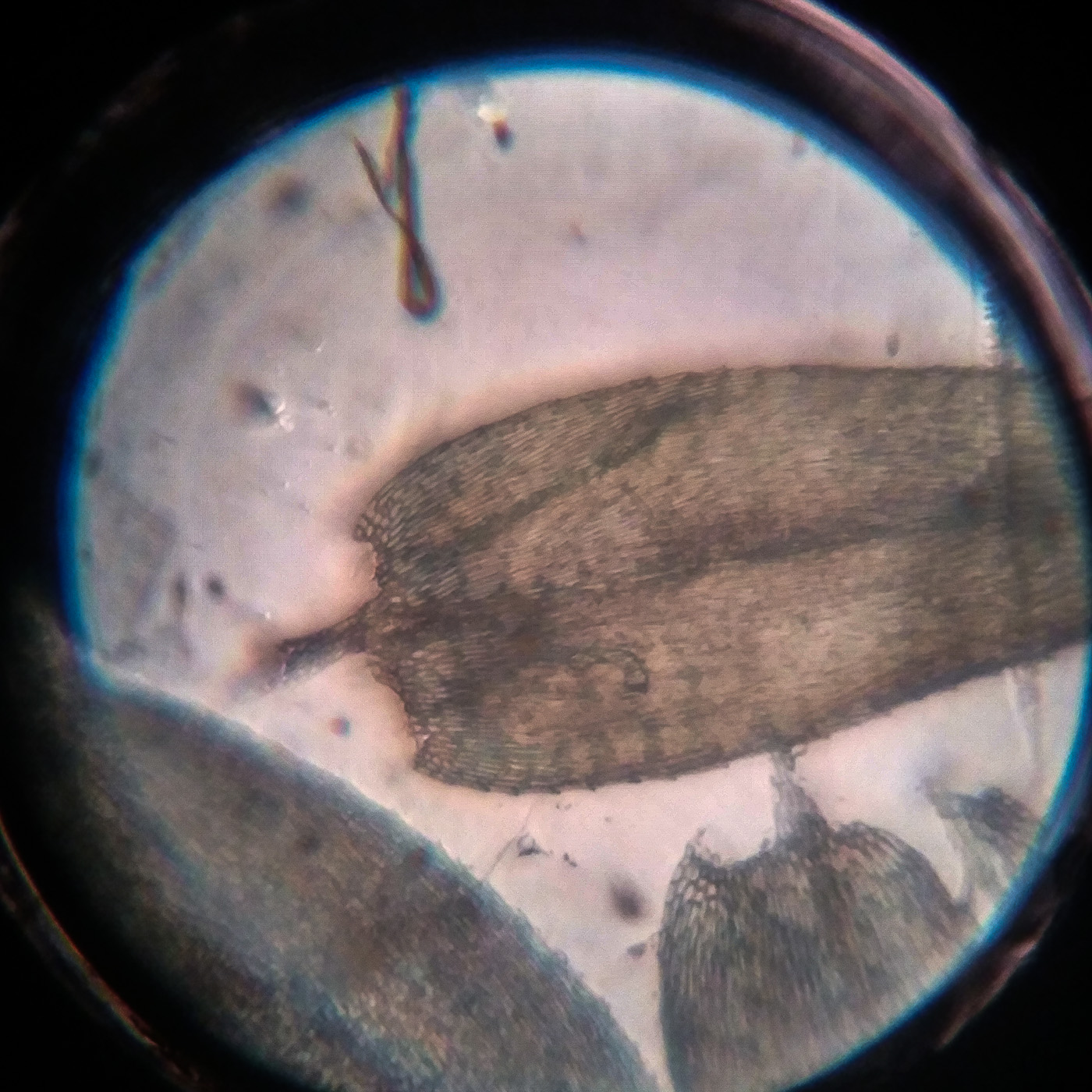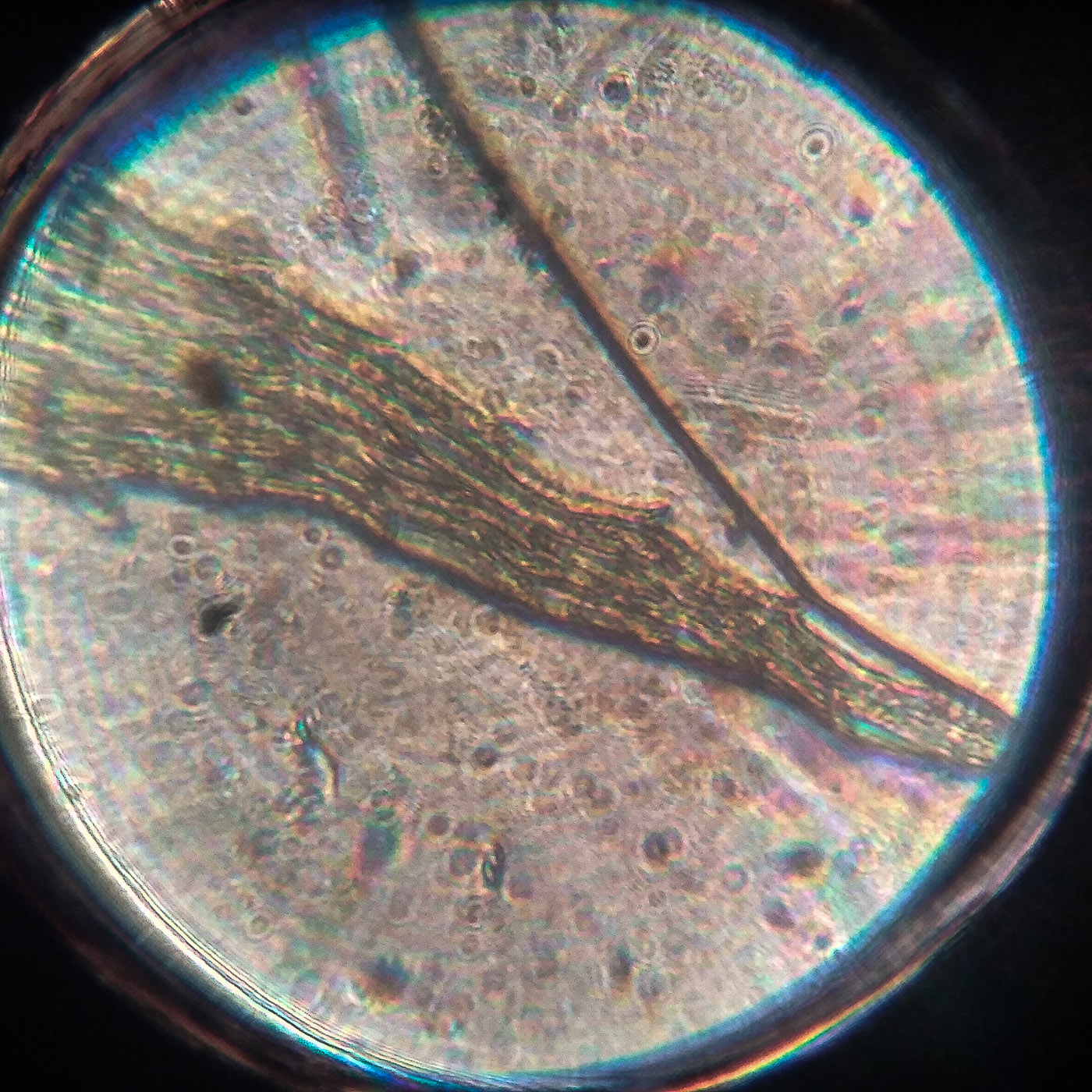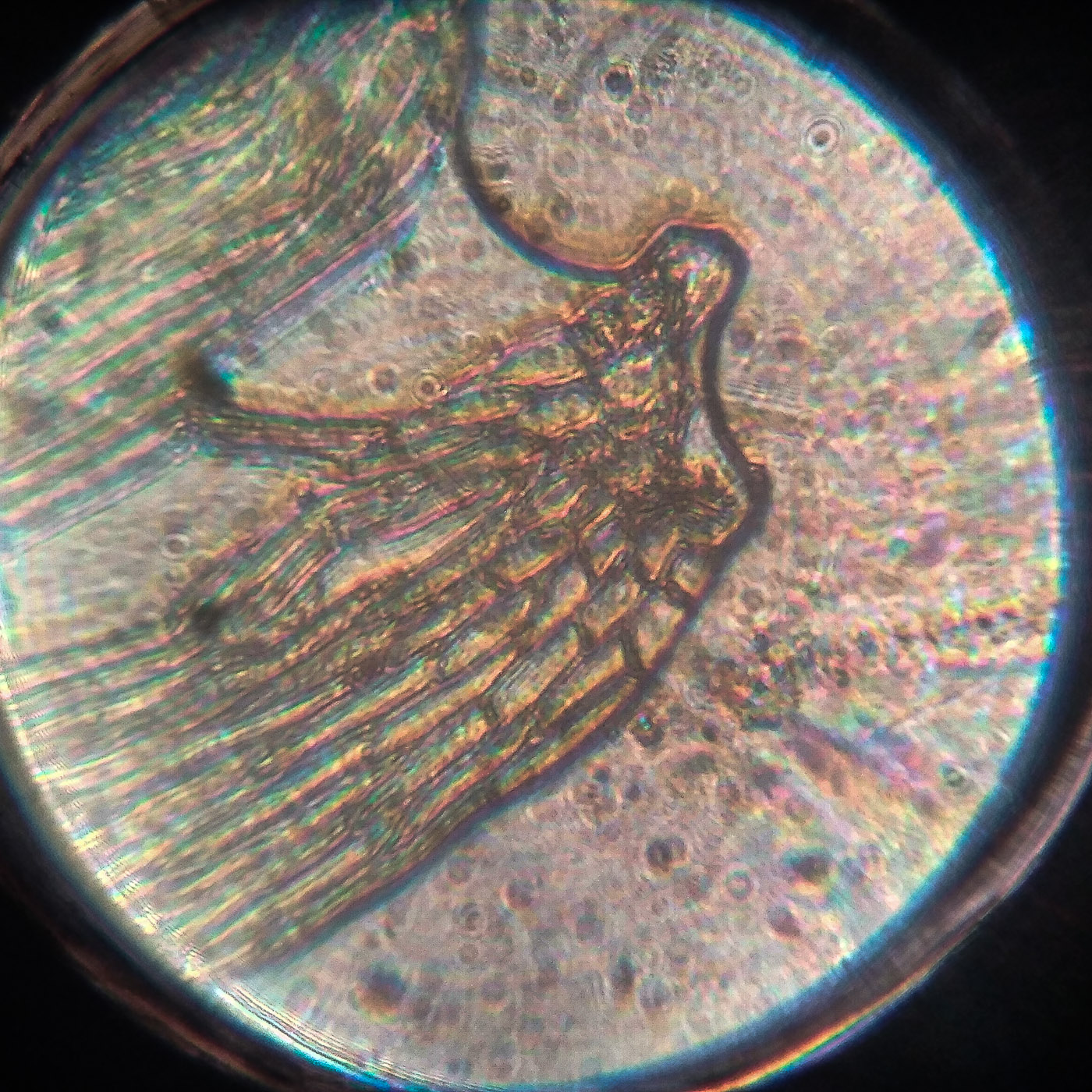 Верхушки веточек (в центре верхушка симподиального побега — тоньше остальных). Свердловская обл., окр. г. Заречный, ур. Черемшанское болото, в логу с ручьём, на гниющей древесине. 27.09.2019.