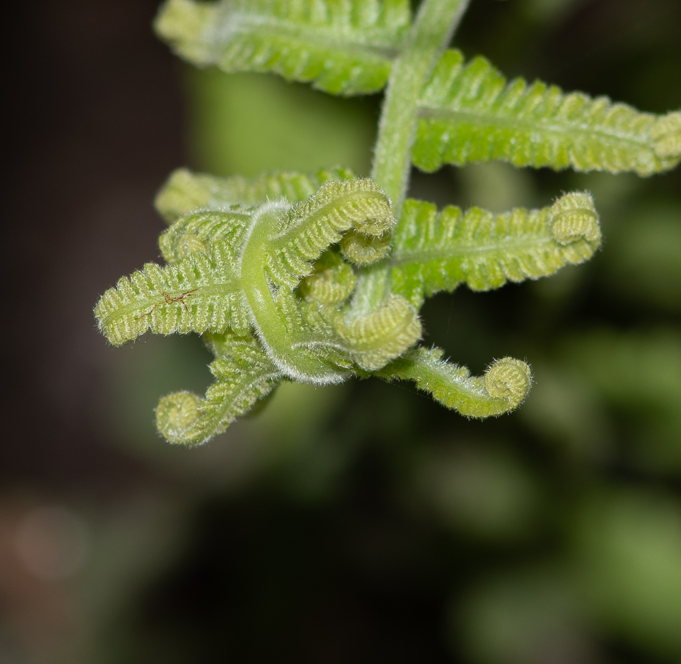 Верхушка разворачивающейся вайи. Перу, г. Лима, ботанический сад лекарственных растений Министерства здравоохранения. 09.10.2019.