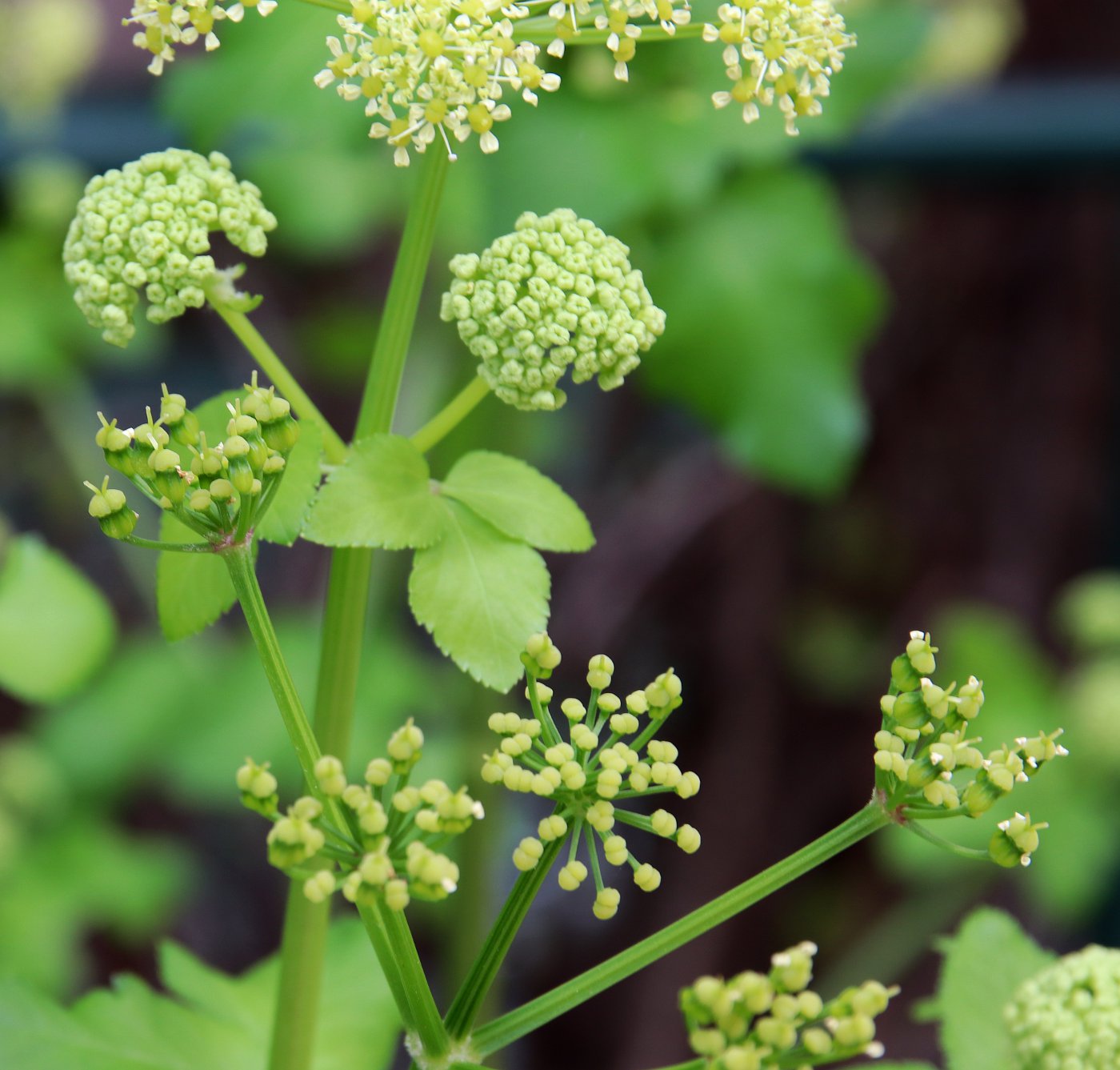 Верхушка побега с соцветием и кормящимися мушками. Израиль, Голанские высоты, заповедник Баниас, берег ручья Баниас около археологического памятника. 07.03.2020.