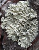 Таллом с соралиями на коре сосне. Казахстан, Акмолинская обл., национальный парк «Бурабай», северное побережье оз. «Щучье», сосновый лес. 30.04.2019.
