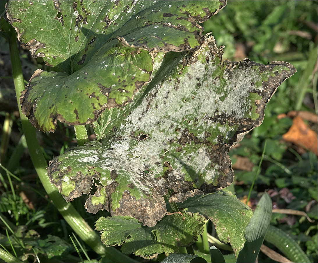 Лист, поражённый грибковым заболеванием. Московская обл., Раменский р-н, окр. дер. Хрипань, садовый участок. 01.10.2020.