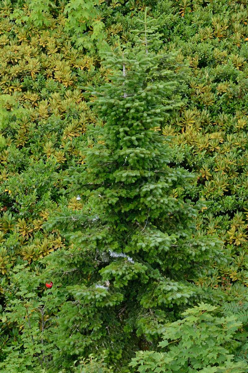 Вегетирующее растение, украшенное игрушками. Краснодарский край, Адлерский р-н Сочи, хр. Аибга, 2140 н.у.м. 18.01.2017.