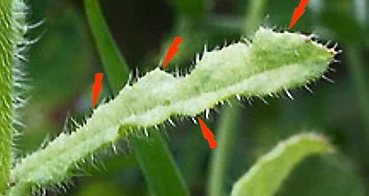 В общем-то мелковато изображение. Я прицепил пошарпленый кадр с 2 кропами - стрелками там показаны вроде как зубчики.Я вот не могу разглядеть там зубчики, мне кажется, всё это волнистость и щетинки. Да и вроде как особенности цветка должны быть более консервативным и значимым признаком. Впрочем, если уверены - переносите! |