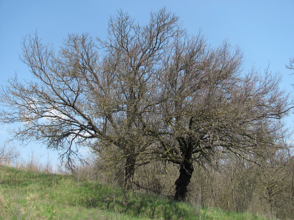 Зацветающие старые деревья. Краснодарский край, Кавказский р-н, окр. ст-цы Темижбекская, береговой склон р. Кубань. 15.04.2021.
