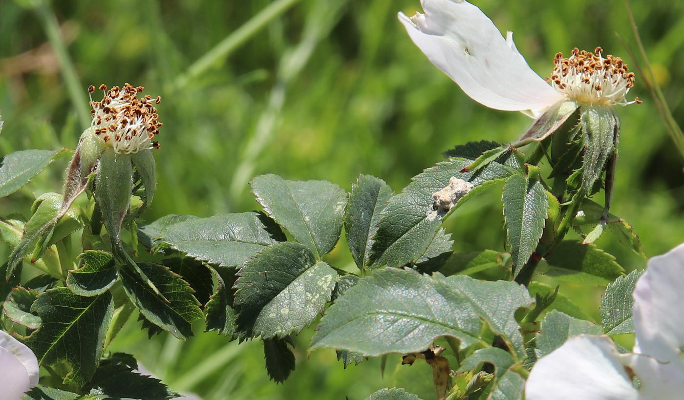 Цветущее растение среди Rubus caesius, Leucanthemum vulgare, Medicago falcata и др. Крым, Бахчисарайский р-н, окр. с. Трудолюбовка, зарастающий остепнённый луг на залежи у подножия горы Сарыман. 11.06.2021.