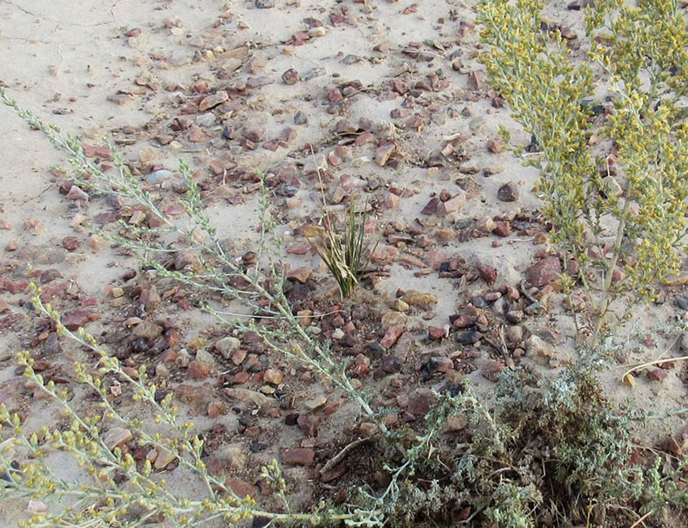 В этой местности в кочковатой степи распространен и другой вид полыни со сходными цветками и листьями. Имеет древовидное основание, преобладает одна веточка высотой 15-25см, цветет несколько раньше. Ареалы разобщены, так как этот вид соседствует с полынью серой и нанофитоном ежовым. Фото давно приведены на этом сайте |