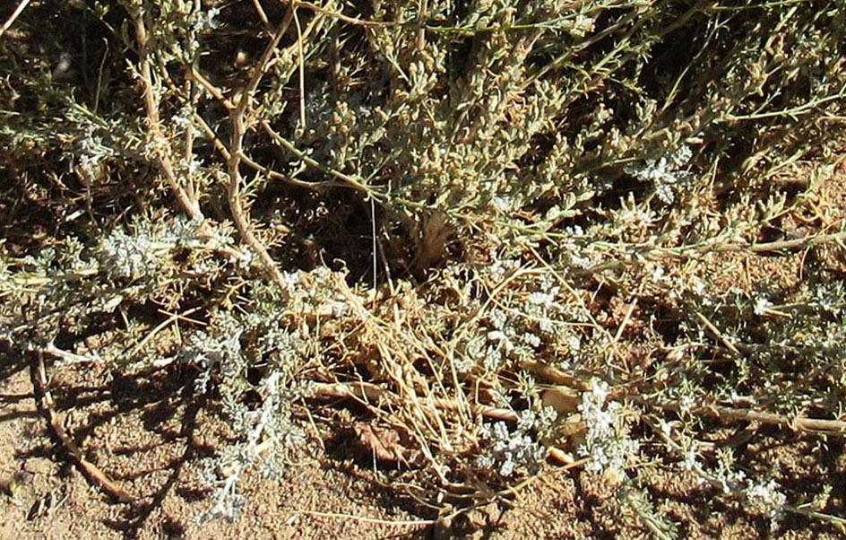 | Игорь Евдокимов | Выстота взрослого растения 40-60см, в период цветения преобладают пушистые густые кустики из-за обилия веточек и довольно крупных цветков. У части растений не все веточки развиты, иногда цветут не одновременно, и до цветения веточки выглядят редкими (фото 159d). Растение многолетнее, основание веточек деревянистое, регенерирует после пожара боковыми отростками (фото 106d). У некотрых растений густые веточки наклонены по преобладающему направлению ветра. Растение устойчиво соседствует с солянками и некоторыми злаковыми.