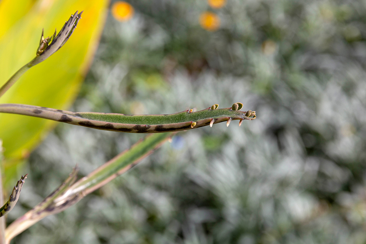 Верхушка вегетирующего растения с выводковыми почками на листьях. Израиль, г. Бат-Ям, в культуре. 06.12.2021.