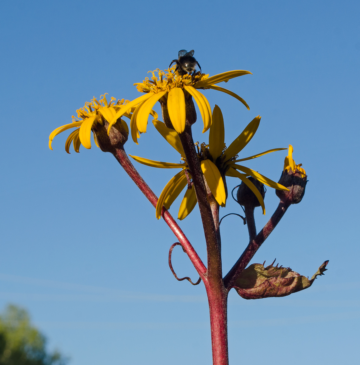 Верхушка побега с соцветиями и кормящимся шмелём. Пермский край, пос. Юго-Камский, частное подворье. 7 августа 2021 г.