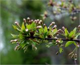 Верхушка ветви с развивающимися бутонами и листьями. Московская обл., Раменский р-н, окр. дер. Хрипань, садовый участок. 17.05.2022.
