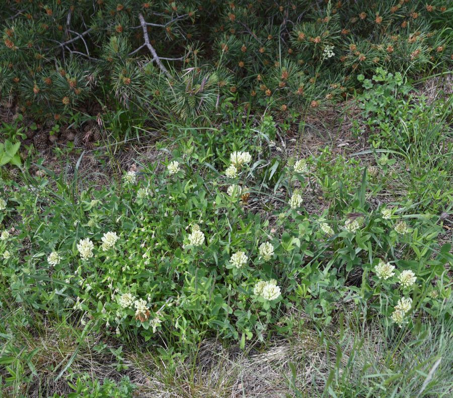 Цветущее растение среди побегов чабреца (Thymus). Республика Ингушетия, Джейрахский р-н, окр. ур. Мухул, высота ок. 2000 м н.у.м., перешеек между двумя глубокими оврагами, луг. 18 июня 2022 г.