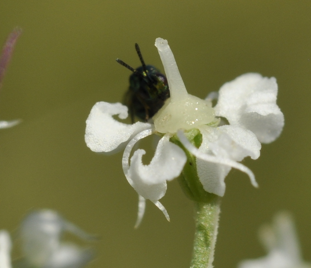 Цветки с кормящимся перепончатокрылым. Приморский край, Шкотовский р-н, с. Новонежино, луг. 09.09.2022.