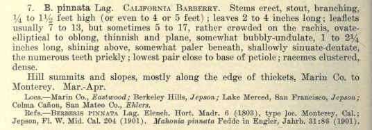 Berberis pinnata, Lag., a tall shrub with the general appearance of B. aquifolium, distinguished from it by the leaflets, which are glaucous underneath, and the lower pair approximate to the base of the petiole; |