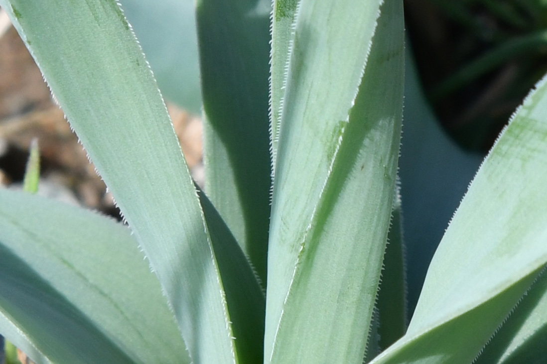 Вегетирующее растение с каплей воды в основании листьев. Казахстан, Алматинская обл., Чу-Илийские горы, уроч. Тамгалы, щебнистый склон. 17 марта 2023 г.