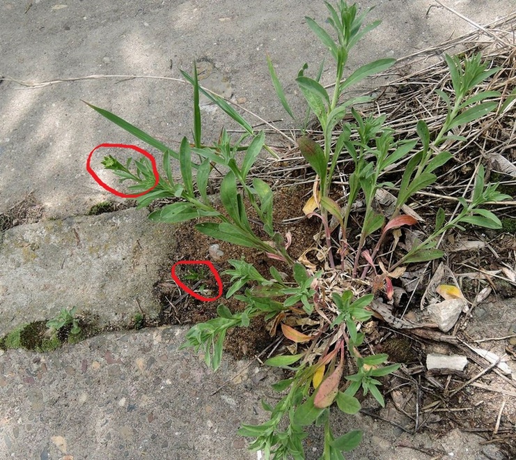 | Александр Эбель | В левой части основного фото видны два маленьких экземпляра (верхний - с зубчатыми листьями и заметными бутонами) - вероятно, это Lepidium densiflorum. |