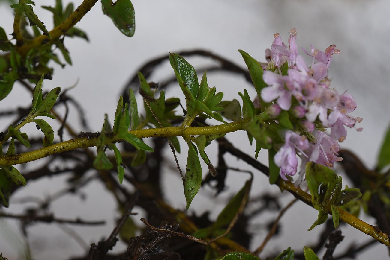 Цветущее растение, извлечённое из грунта (Thymus pseudonummularius Klokov & Des.-Shost.). Республика Ингушетия, Джейрахский р-н, рядом с альплагерем "Кязи"; выс. 1980 м н.у.м., луг. 22 июля 2022 г.