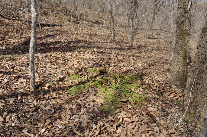 Разворачивающиеся вайи. Приморский край, Шкотовский р-н, окр. пос. Подъяпольск, склон сопки, широколиственный лес. 23.04.2023.