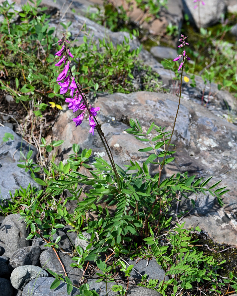 Цветущее растение. Красноярский край, Таймырский Долгано-Ненецкий р-н, плато Путорана, водопад Китабо-Орон, каменистый берег реки. 26.07.2023.