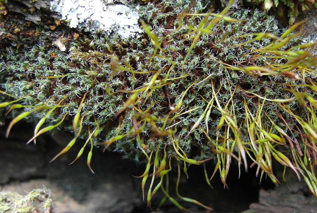 Дерновинка растений. Казахстан, Туркестанская обл., Толебийский р-н, к юго-востоку от с. Акбастау; долина ручья, роща акаций с развалинами домов, полусгнивший ствол упавшего дерева, покрытый мхом. 30.03.2023.