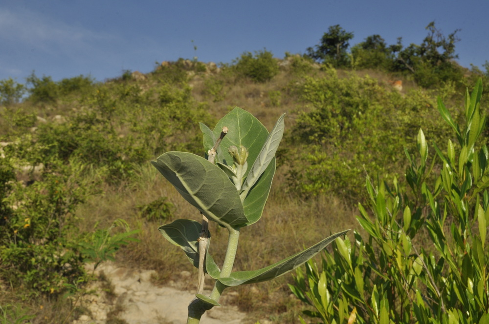 Верхушка растения с развивающимся соцветием и повреждённым побегом. Вьетнам, провинция Кханьхоа, г. Нячанг, гора Co Tien (Angel Mountain), травяно-кустарниковый склон. 08.09.2023.
