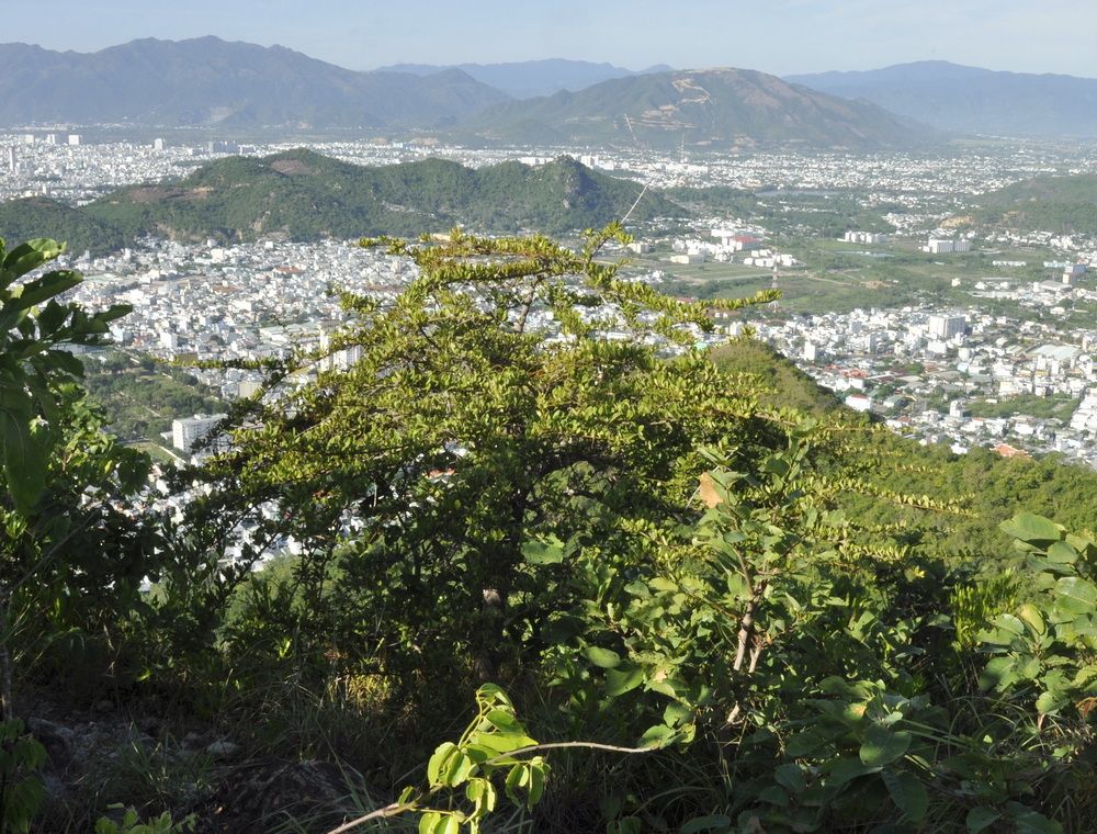 Часть ветви, опутанной желтоватыми побегами растения-паразита (Cassytha filiformis). Вьетнам, пров. Кханьхоа, г. Нячанг, гора Co Tien (Angel Mountain), кромка склона с травяно-кустарниковой растительностью. 08.09.2023.