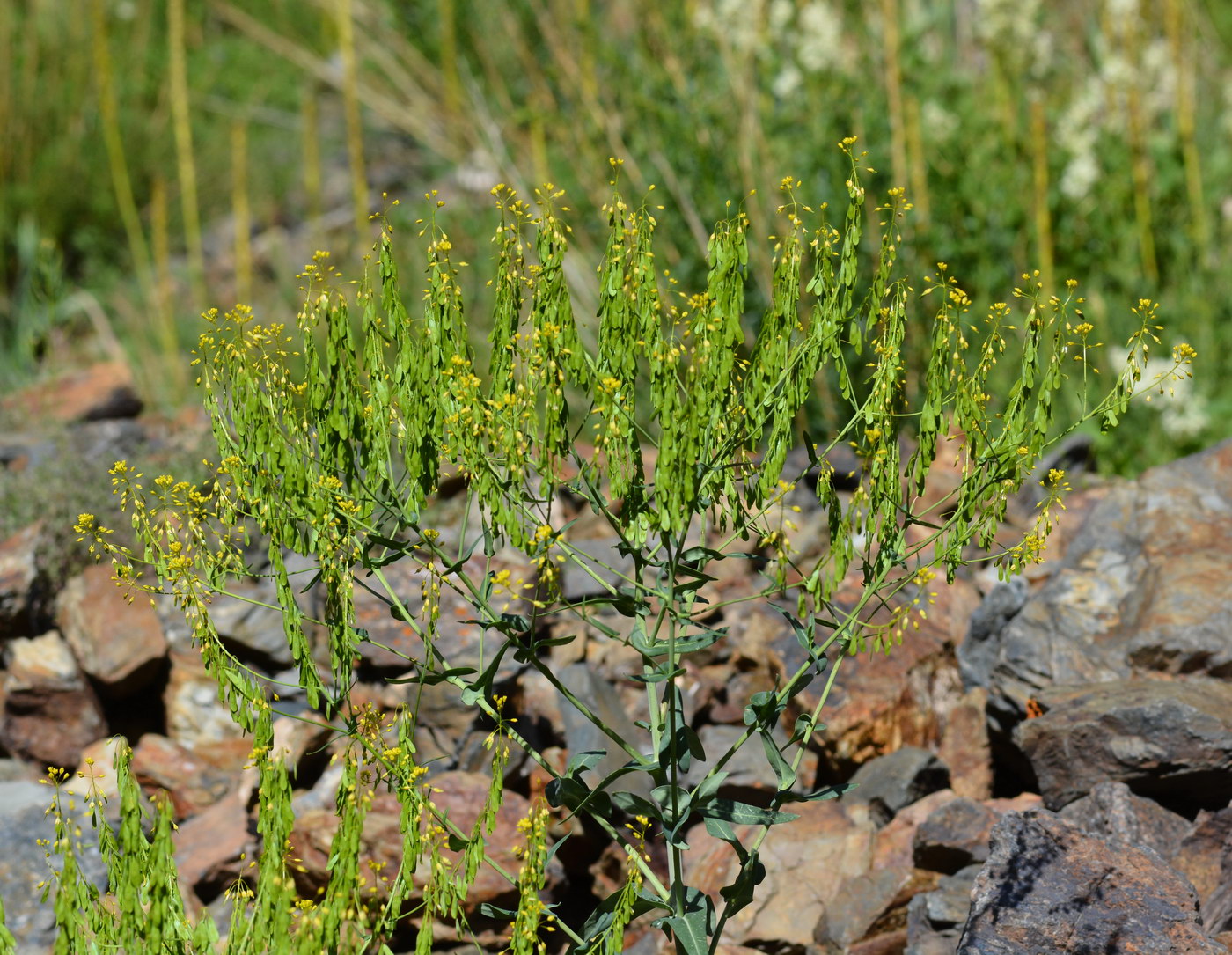 Цветущее и плодоносящее растение. Кыргызстан, Ошская обл., Чон-Алайский р-н; Алайский хр., 3 км севернее аула Кызыл-Эшме, ок. 2900 м н.у.м., основание каменистого склона западной экспозиции. 27.06.2024.