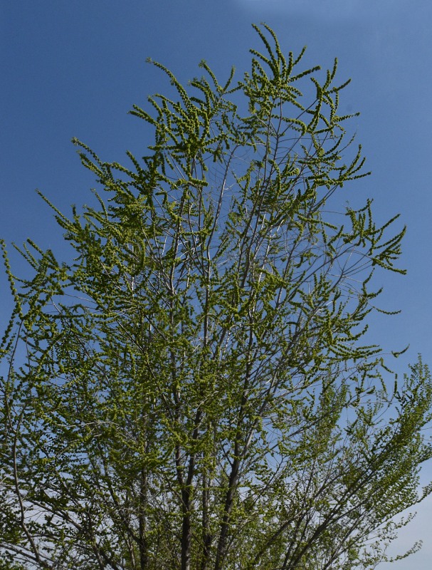 Верхушка побега с соплодиями. Татарстан, г. Казань, берег о. Нижний Кабан, в культуре. 30.04.2024.