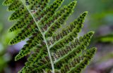 Часть вайи с сорусами (вид на абаксиальную поверхность). Московская обл., Дмитровский гор. округ, окр. оз. Свиное, опушка смешанного леса. 21.07.2024.