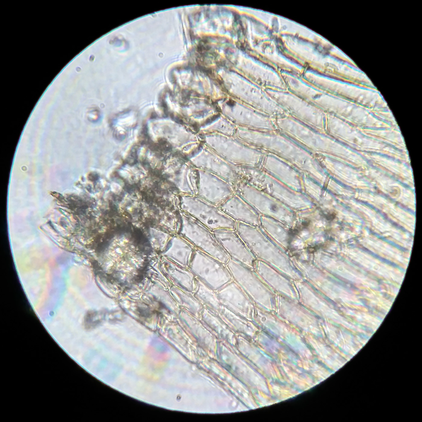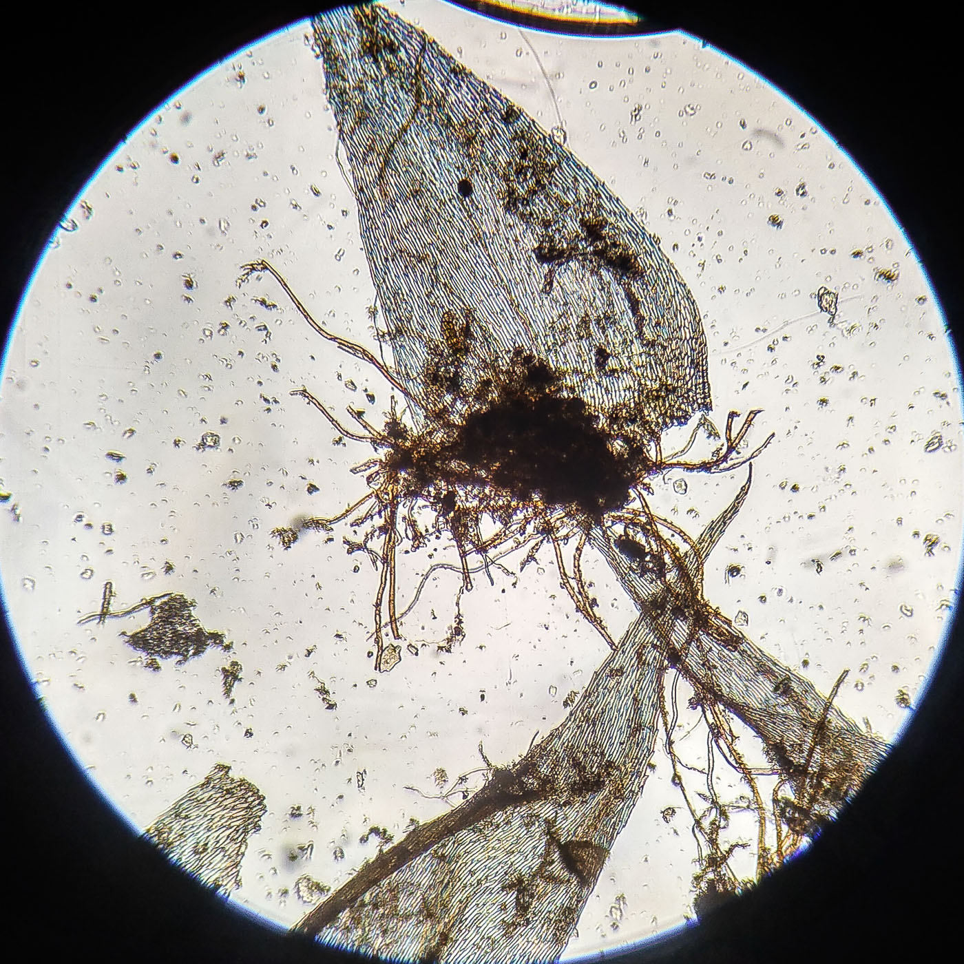 Верхушки веточек в основании ствола (?). Свердловская обл., окр. г. Заречный, ур. Черемшанское болото, сырой сосново-берёзовый лес, на коре. 24.10.2024.