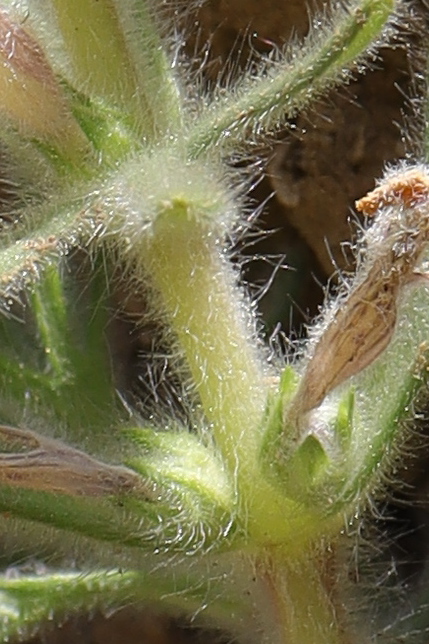 + Растения опушены преймущественно по 2 противоположным граням стебля короткими простыми волосками с примесью членистых жестковатых волосков, иногда стебли почти голые или негусто кругом опушенные; чашечка опушена только в верхней части . . . . Ajuga chia |