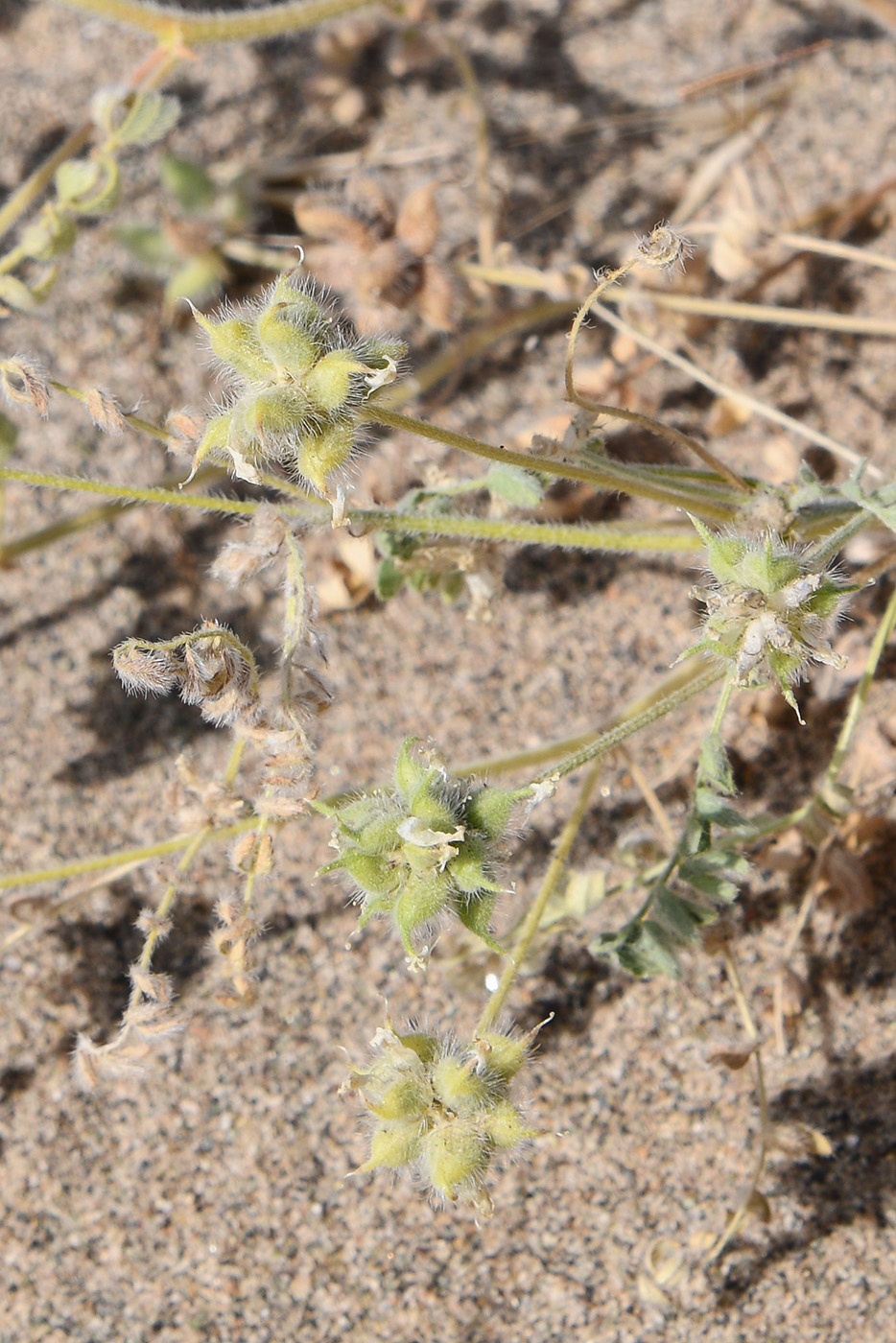 Цветущее и плодоносящее растение. Таджикистан, Хатлонская обл., р-н Джайхун, окр. с. Нижний Пяндж, пустыня Карадум, грядово-бугристые пески. 15 апреля 2025 г.