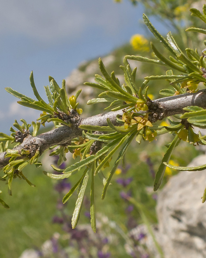 Цветущее растение. Карачаево-Черкесия, Зеленчукский р-н, гора Джангур, ≈ 1500 м н.у.м., в расщелине известняковой скалы. 04.06.2025.