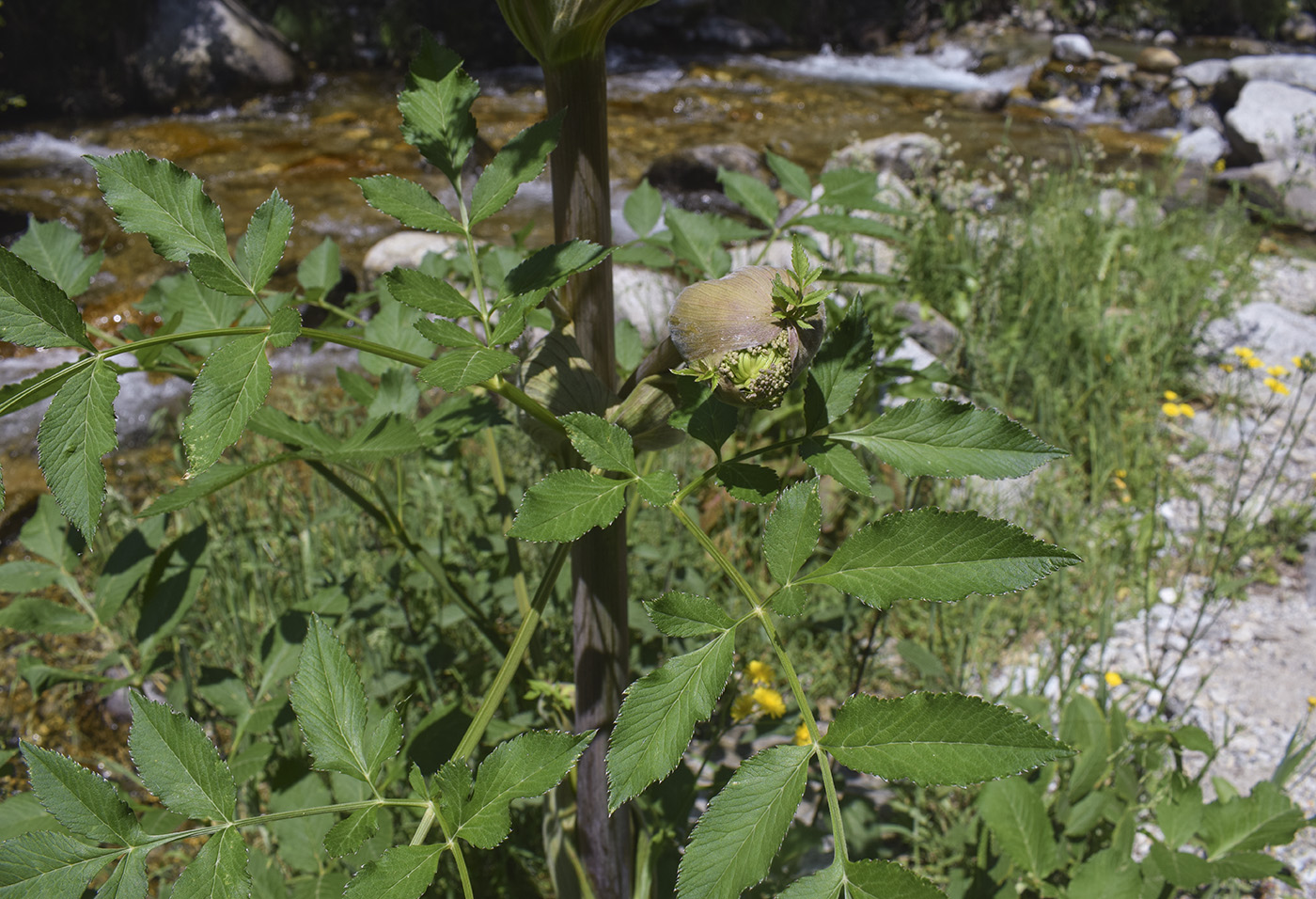 Зацветающее растение. Испания, Каталония, пров. Жирона, комарка Рипольес, муниципалитет Сеткасес, окр. н.п. Сеткасес, ≈1300 м н.у.м., пойма р. Тер, каменистый берег реки. 29.06.2025.