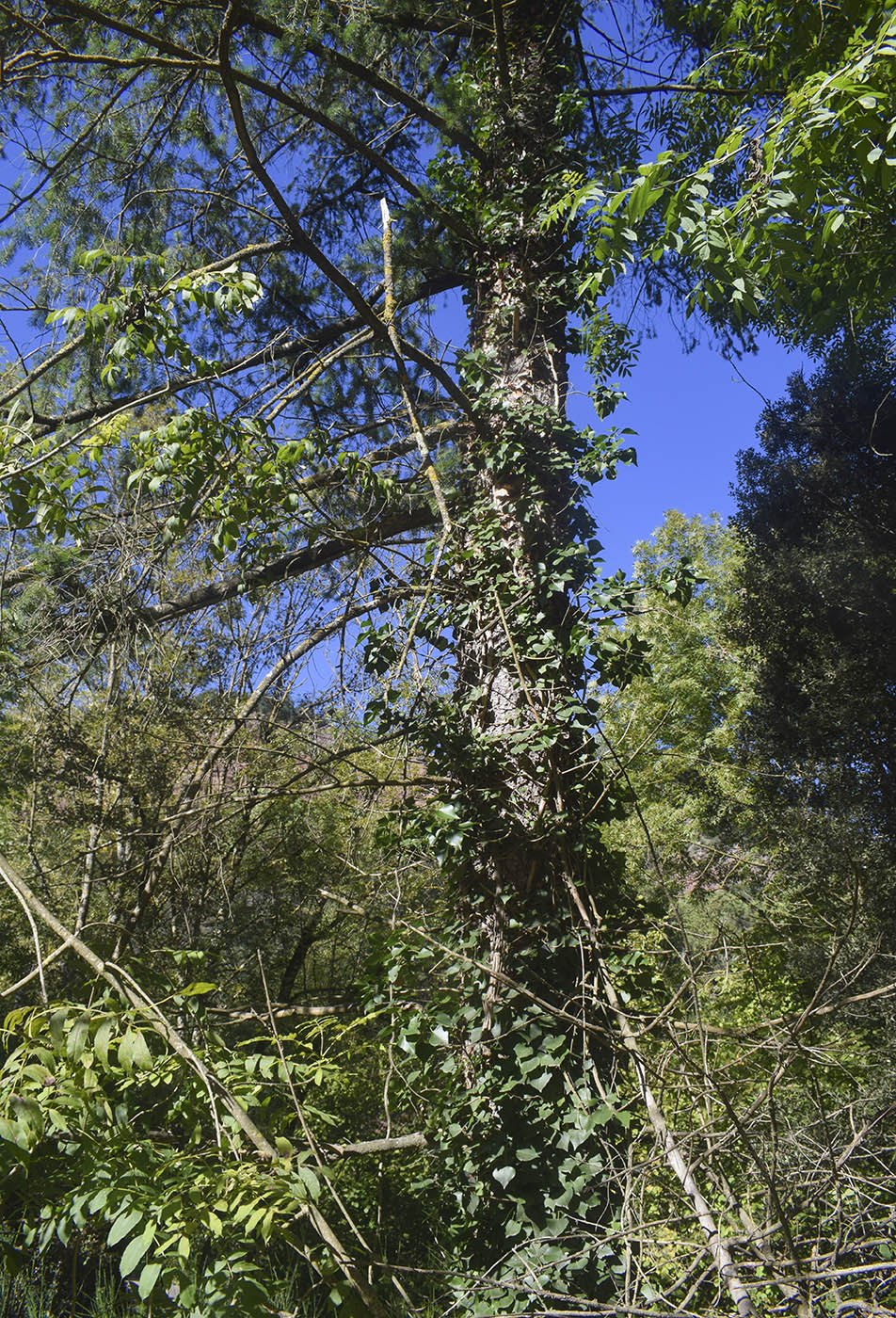 Веточка со зрелой шишкой. Испания, Каталония, пров. Барселона, комарка Осона, муниципалитет Виланова-де-Сау, окр. н.п. Виланова-де-Сау, смешанный лес, борт ручья Torrent La Font d'en Martí (бассейн р. Тер), в составе приречной растительности. 21.10.2025.