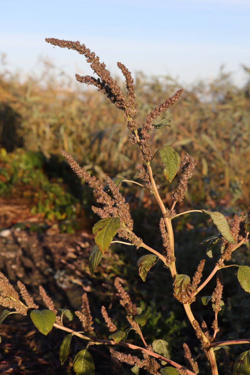 Зацветающее растение (внизу слева — Amaranthus другого вида). Крым, Севастополь, берег бухты Круглая. 27.09.2025.