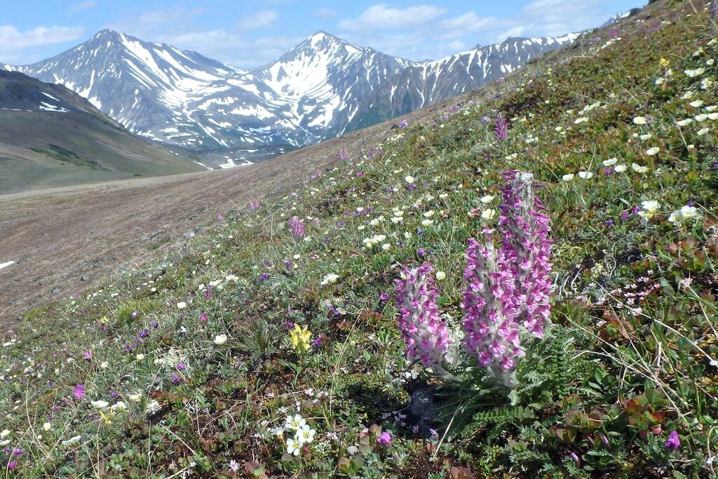 Цветущее растение. Камчатский край, Мильковский р-н, Ганальский хр., северное подножие вулкана Бакенинг, склон хр. к югу от пер. Майский, ≈ 1290 м н.у.м., горная тундра. 30.06.2025.