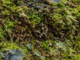 Таллом на подушке из зелёных мхов. Крым, окр. с. Верхнесадовое, северный склон холма Сиваг-Кермен-Бурун, смешанный лиственный лес, покрытые мхом скалы. 22.10.2025.