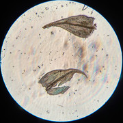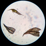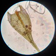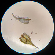 По коротким клеткам, местуобитания и постепенно длинно заострённые листьям — S.populeum. Ещё ("Флора ..."): из сырых местообитаний S.populeum имеет более широкую клеточную сеть и определяется по "непрозрачным, богатым хлоропластами клеткам углов основания листа". А тут вроде есть такие или нет ... непонятно.